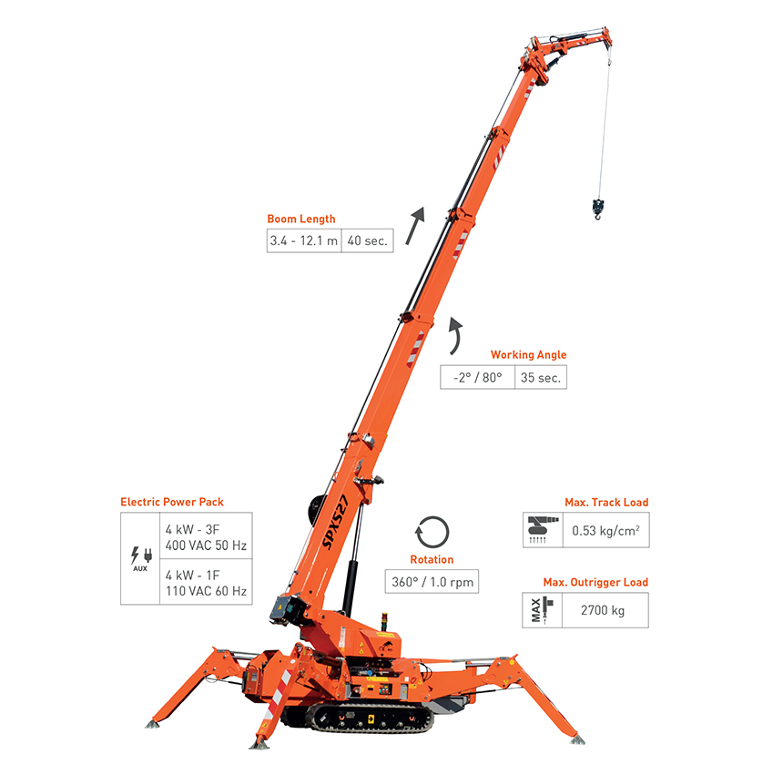 • 권과방지기, 하중지시계, 유압안전밸브, 하중계 와이어라쳇, 삼색등, 경고부저, 수평계, EMO스위치, 전도 방지